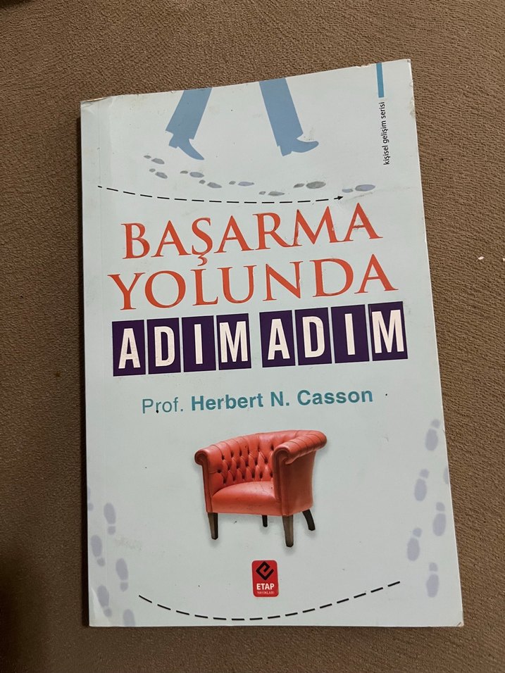 Prof. Herbert N. Casson tarafından yazılan, başarıya giden yolu adım adım anlatan kitap. Kapakta ayak izleri ve kırmızı koltuk yer alıyor.