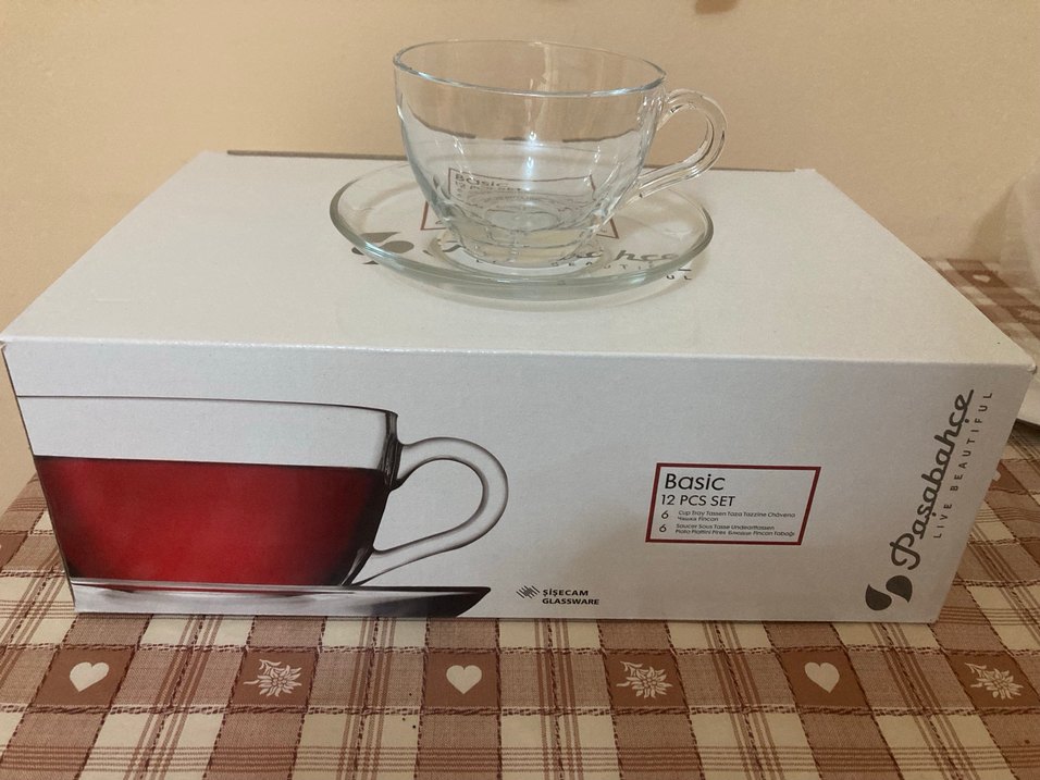 Basic 12 parça bordo renkli çay fincanı ve tabağı takımı, çay servisi için uygundur.
