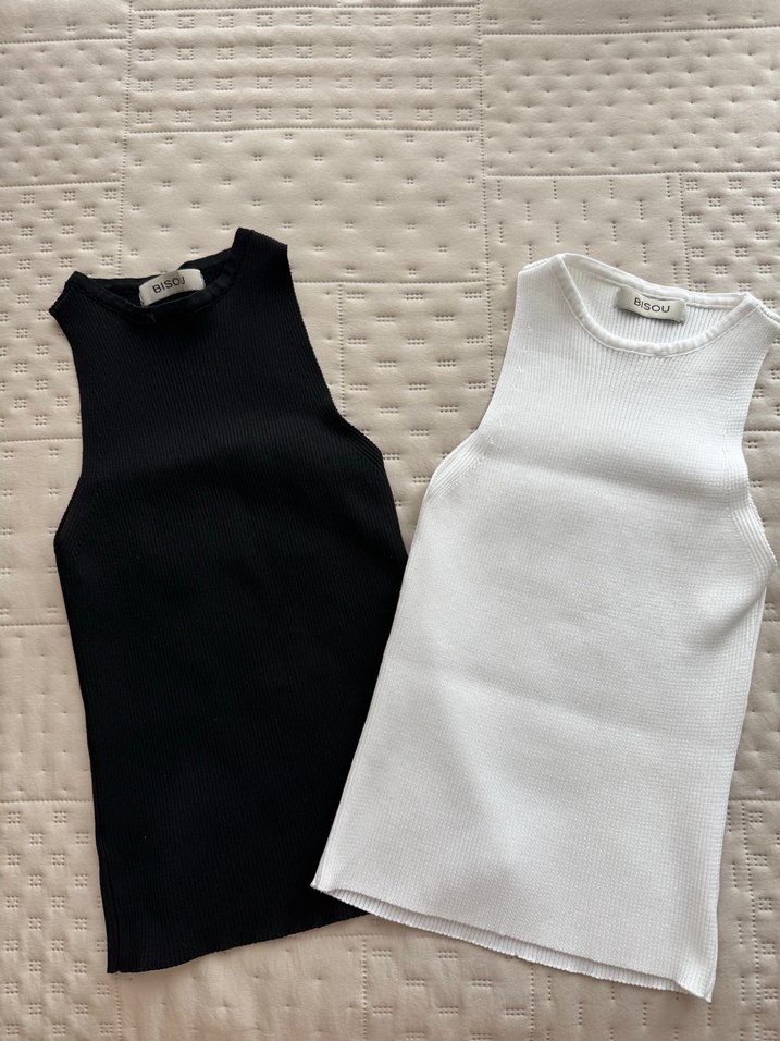 Basic iki parça siyah ve beyaz büstiyer bluz üst