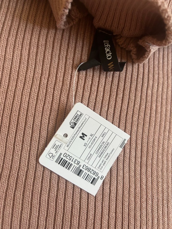 Bej renkte, rahat ve basic tarzda kazak. Fitilli dokusu ve orta beden etiketi ile deFacto markası.