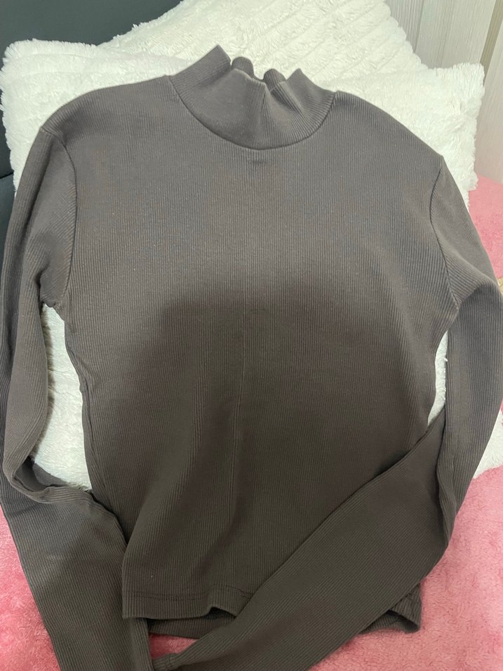 Kahverengi, yarım balıkçı yaka ve uzun kollu kadın kazak. Yumuşak sentetik kumaştan, rahat ve şık günlük sokak stili kazak.