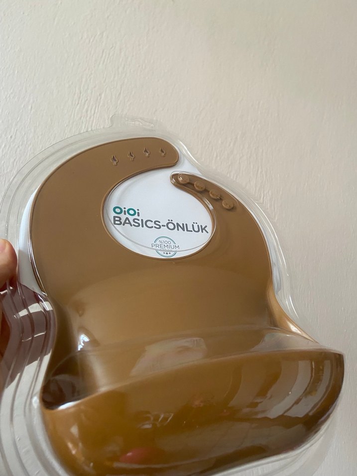 BASICS-Önlük markalı koyu bej renkli, baskılı bebek mama önlüğü, döküntüleri yakalayan cep detayına sahiptir. Yumuşak ve kolay temizlenir malzemeden üretilmiştir. Hiç kullanmadım babymall ürünüdür :)