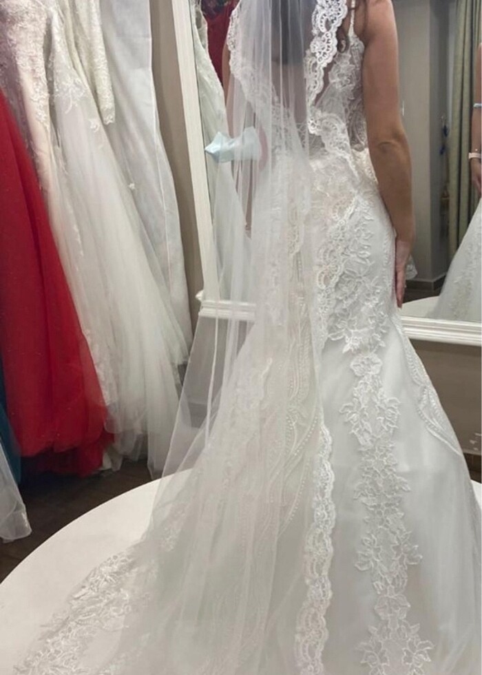 Özel dikim yaptırmıştım 34-36 bedene uygundur arkası ayarlanabilir. Ben 167 boy 55 kilo iken giydim. Gelinliğim boyu ilave olarak 15 cm topuklu giyildiğinde dahi uygundur. Bu arada sadece çekimlerde giyildi.