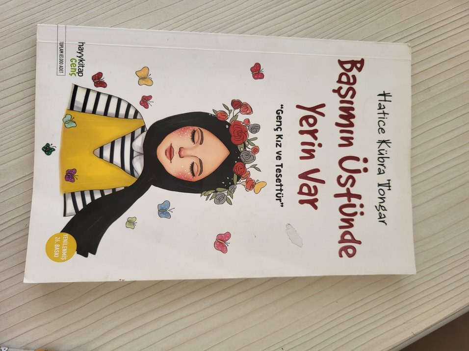 "Başımın Üstünde Yerin Var" adlı şiir kitabı, genç kız ve tesettür temalarını kelebeklerle çevrili bir kız resmiyle işliyor.