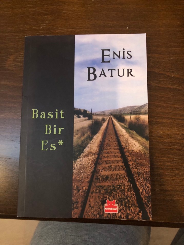 Enis Batur'un "Basit Bir Es*" adlı romanı, uzaklara uzanan demiryolu ve bulutlu gökyüzü görseline sahip.
