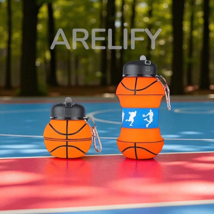 Turuncu renkte, basketbol temalı çocuk termos şişesi. Siyah kapaklı ve taşıma klipsi bulunur. Marka: ARELIFY. Yeni üründür