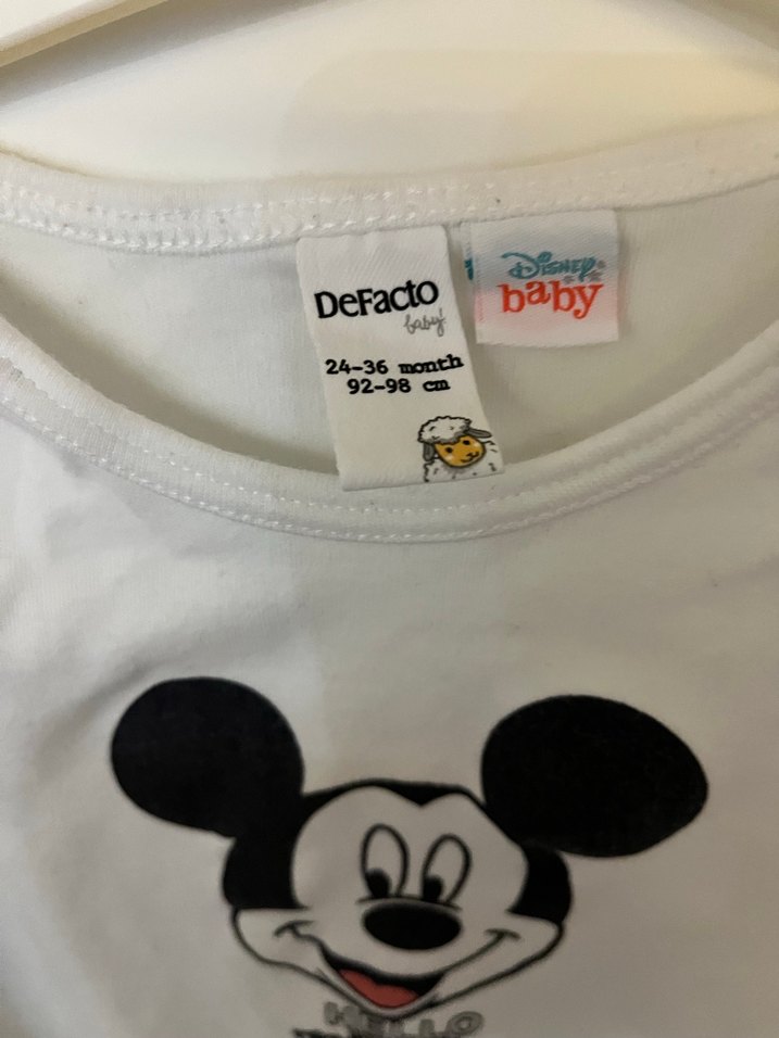 DeFacto baby markalı, 24-36 ay bedeninde, baskılı Mickey Mouse figürlü beyaz çocuk atlet.
