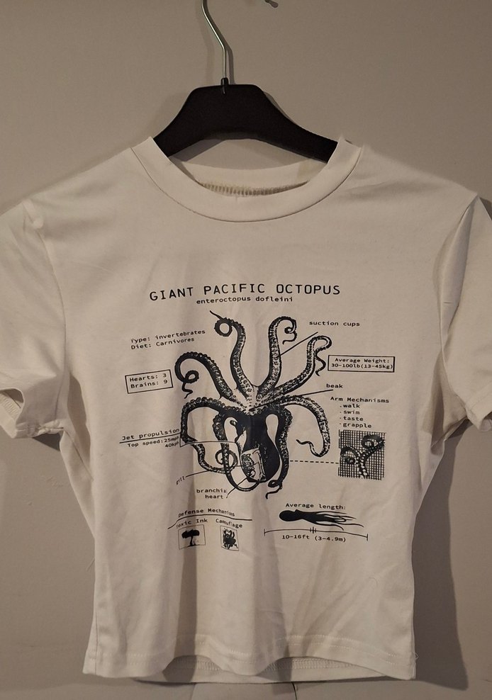 Baskılı ahtapot deseniyle beyaz crop