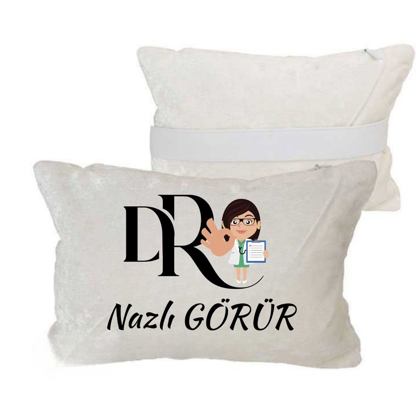 Baskılı Beyaz Doktor Yazılı Araç Boyun Yastığı İsme Özel