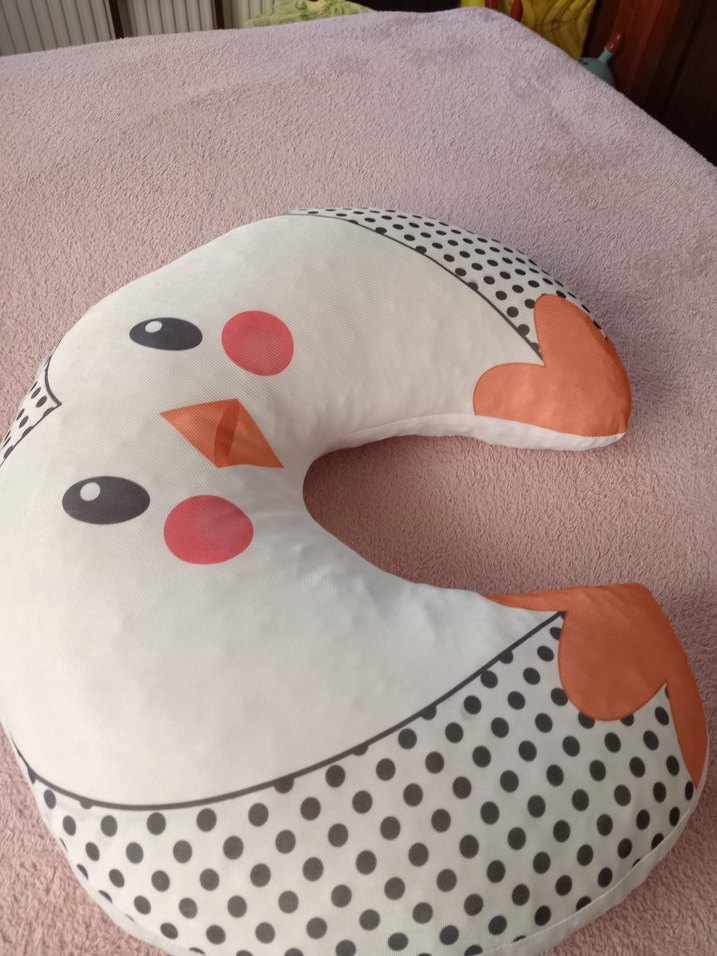 Baskılı, pastel renklerde beyaz emzirme ve hamile yastığı. Kuş desenli, yumuşak ve destekleyici kumaş kullanılmış.