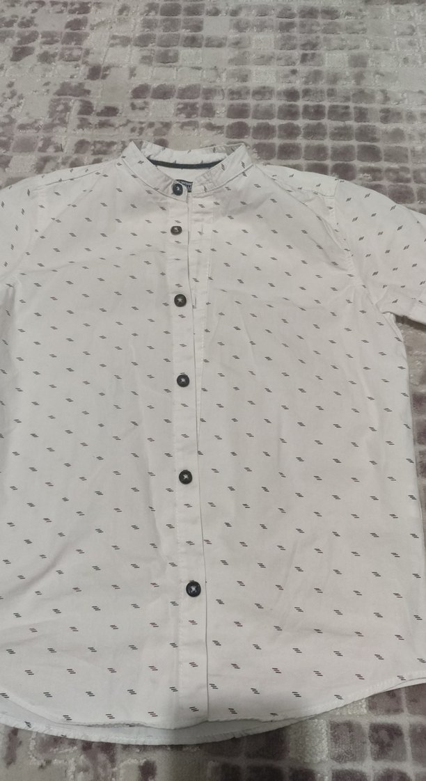 Baskılı Beyaz Erkek Çocuk Kısa Kollu Gömlek