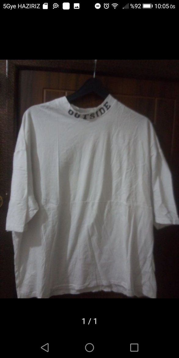 Beyaz pamuklu erkek tişört, yuvarlak yaka ve kısa kollu, bol kesimdir. Yaka kısmında 'OUTSIDE' baskısı vardır, rahat ve sokak stili için uygundur.