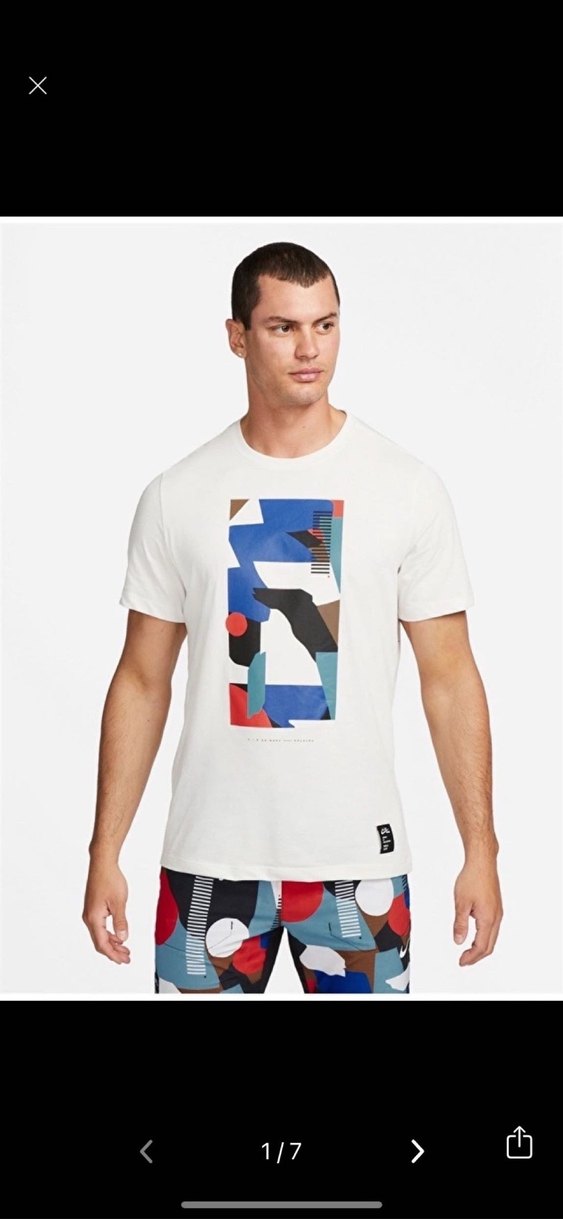 Pamuk kumaştan, baskılı renkli geometrik desenli, kısa kollu, beyaz erkek tişört. Spor ve sokak stili için uygun.Sadece deneme amacli giyildi cok iyi durumda M ve Xl giyene de olur