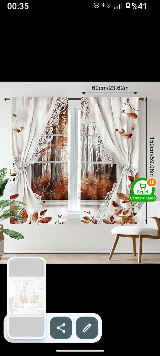 Beyaz zemin üzeri gri yaprak desenli, dantel detaylı modern perde. Her parça 150x60 cm ölçülerindedir, şık ve yumuşak dokuludur.
