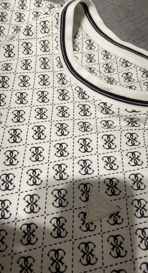 Baskılı gri desenli beyaz yakada küçük logo detayı ve kontrast şeritle tamamlanmıştır.