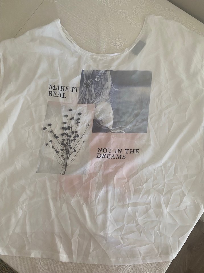 Kısa kollu, yuvarlak yakalı, salaş kesim hamile tişörtü. İpek gibi dokusu ve ilham verici baskısıyla günlük sokak stili için uygundur. C&A marka xl beden