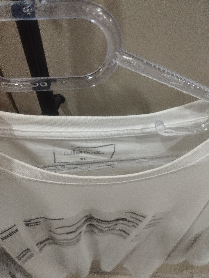 Baskılı, fermuarlı beyaz hamile tişörtü, yuvarlak yakalı ve salaş kesimli. Sentetik kumaştan, günlük kullanıma uygun, minimalist sokak stili için ideal.