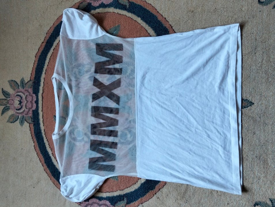 Beyaz renkli, kısa kollu hamile tişörtü, salaş kesim ve tekne yaka ile dikkat çeker. Üzerinde 'WXWW' yazılı baskı bulunur ve midi boydadır. Günlük kullanım için uygundur.