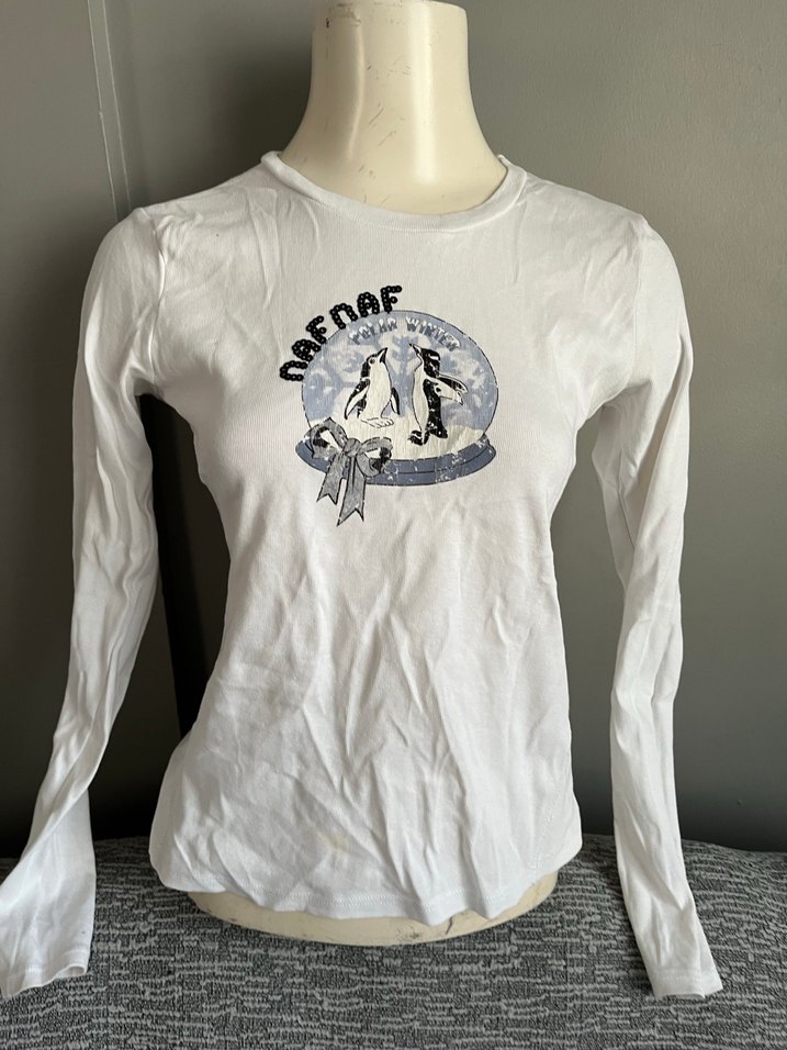 Pamuk kumaştan yapılmış, uzun kollu ve yuvarlak yakalı, baskılı ve ince kesim beyaz hamile tişörtü. Şık ve rahat, dış mekan kullanımı için uygundur.