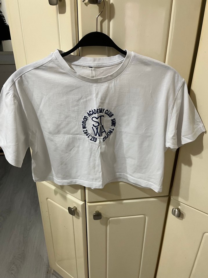 Pamuk kumaştan üretilmiş, baskılı ve kısa kollu beyaz kadın tişörtü. Salaş kesimi ve kısa boyuyla spor ve günlük şıklık sağlar. ♀️
