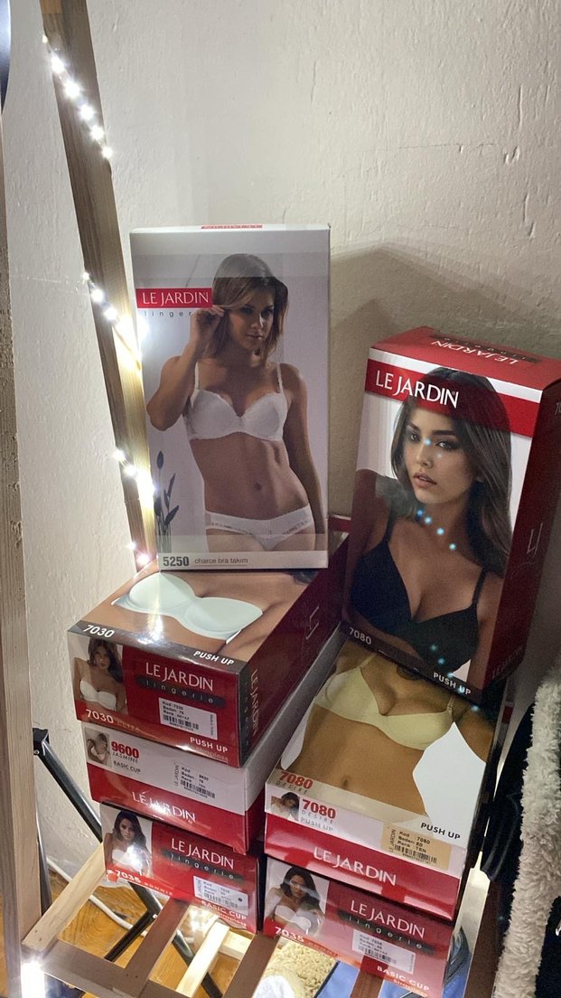 Beyaz renkli, baskılı mini sütyen, kısa kesim ve Paris tarzı karşı kültür stilini yansıtıyor. LEJARDIN etiketi sıfır etiketli ürün