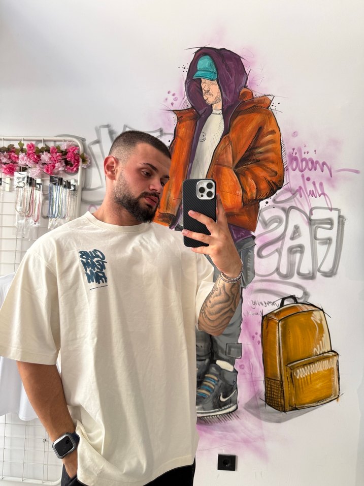 Baskılı Beyaz Oversize Erkek Tişört