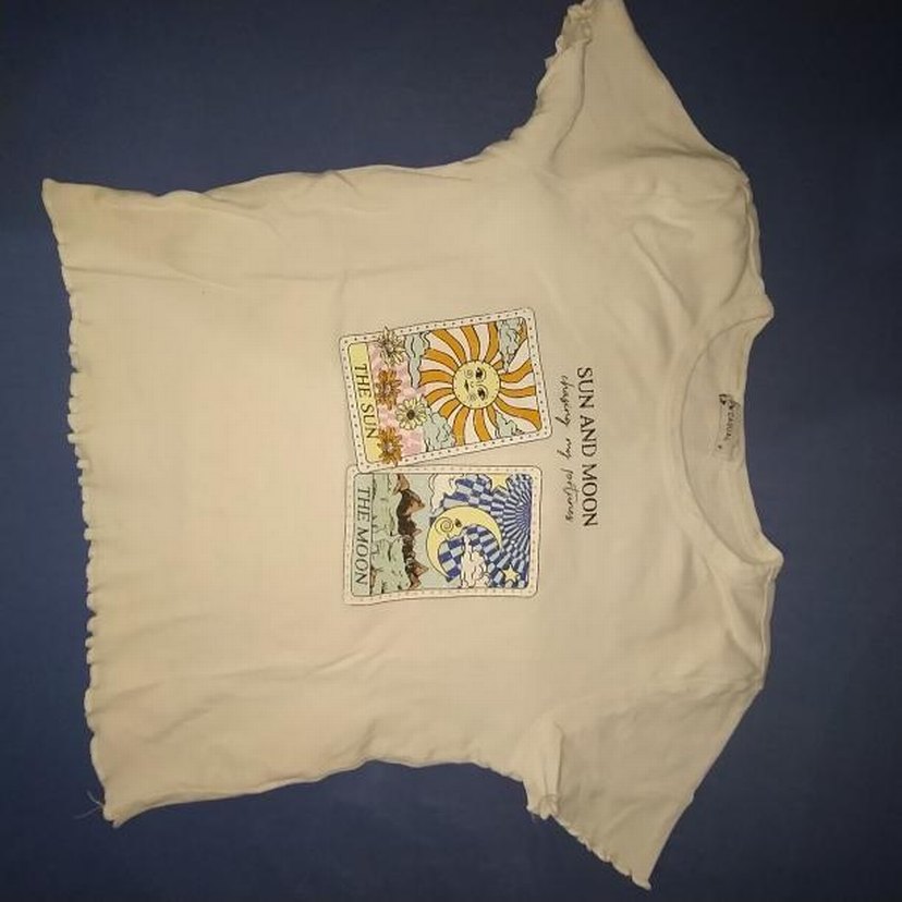 Pamuk kumaştan, kısa kollu ve bisiklet yaka, hafif beyaz renkte bohem tarzda baskılı hamile tişörtü.