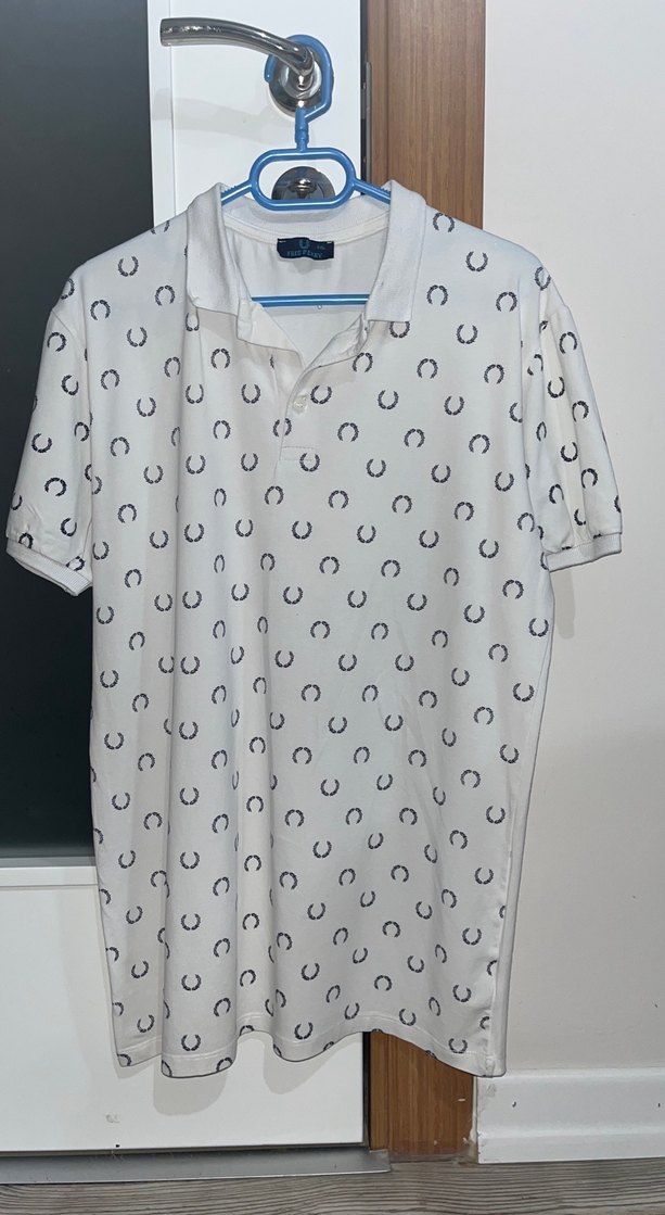 Baskılı Beyaz Pamuklu Erkek Polo Tişört
