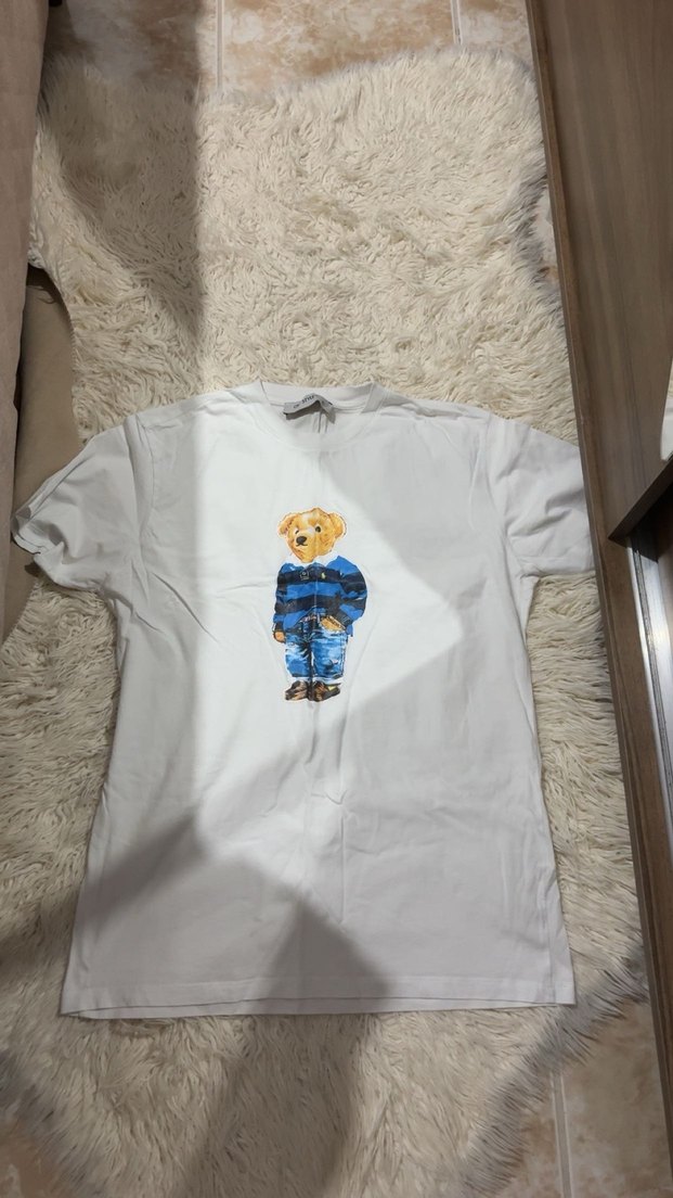 Kısa kollu ve yuvarlak yakalıdır. Yumuşak kumaştan üretilmiş, önde baskılı ayıcık deseniyle rahat ve trend bir görünüm sunar.