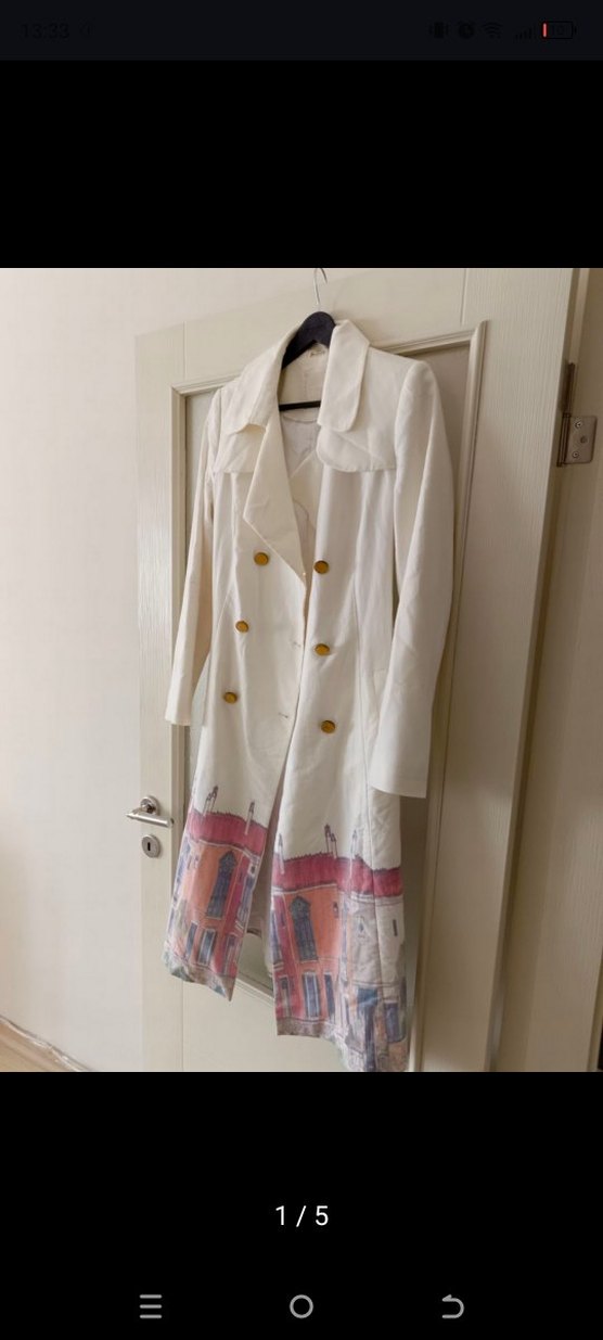 Baskılı Beyaz Uzun Kadın Trençkot Setrms