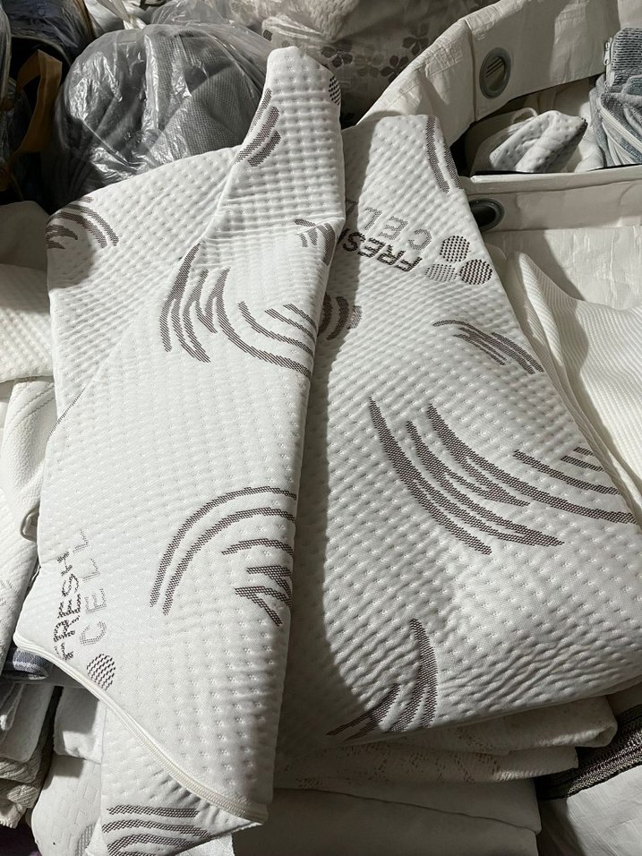 Gri baskılı desenlere sahip beyaz yatak koruyucu, dokulu yüzeyi ile ekstra konfor ve koruma sağlar. ️