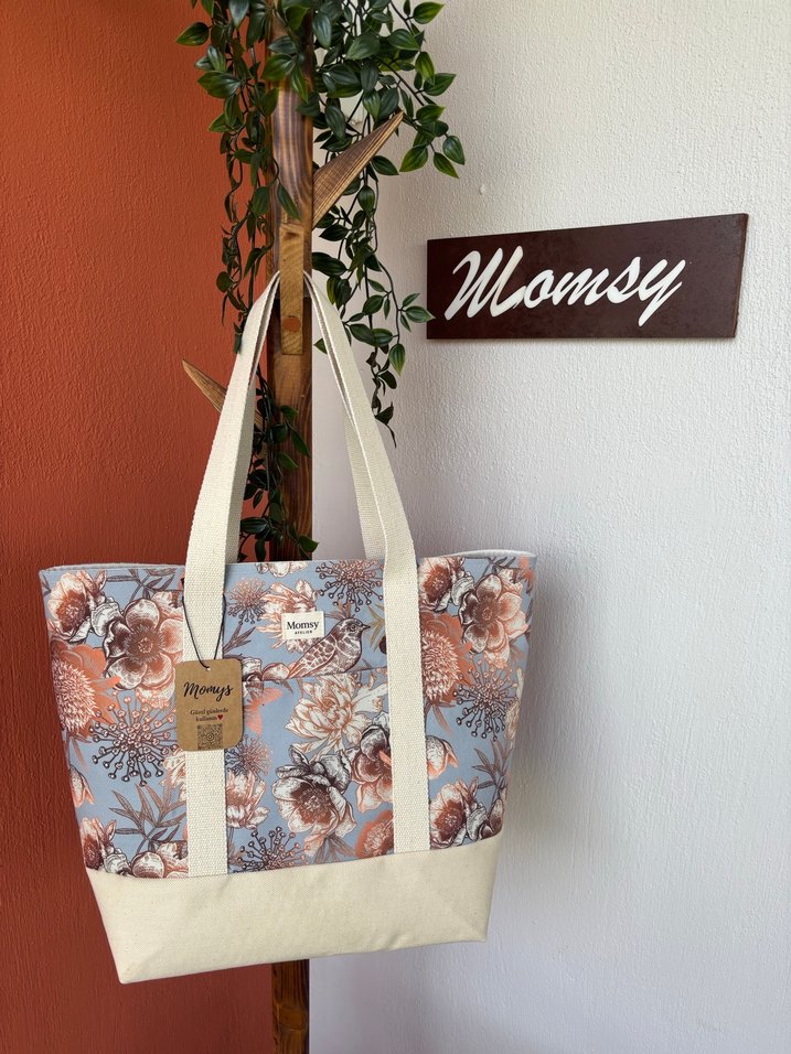 Yeni Tote Bag ✨ 1 geniş cep + önde/arkada ekstra cepler El emeği • Özel üretim • Kumaşını sen seç ✂️ İletişim @momsyatelier instagram