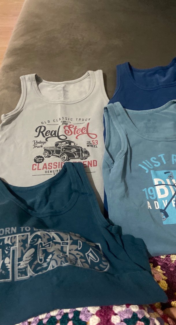 Farklı mavi ve gri tonlarında, baskılı vintage ve sportif desenlere sahip dört adet çocuk atlet. Rahat ve günlük kullanım için uygundur. 4 tane fiyatı