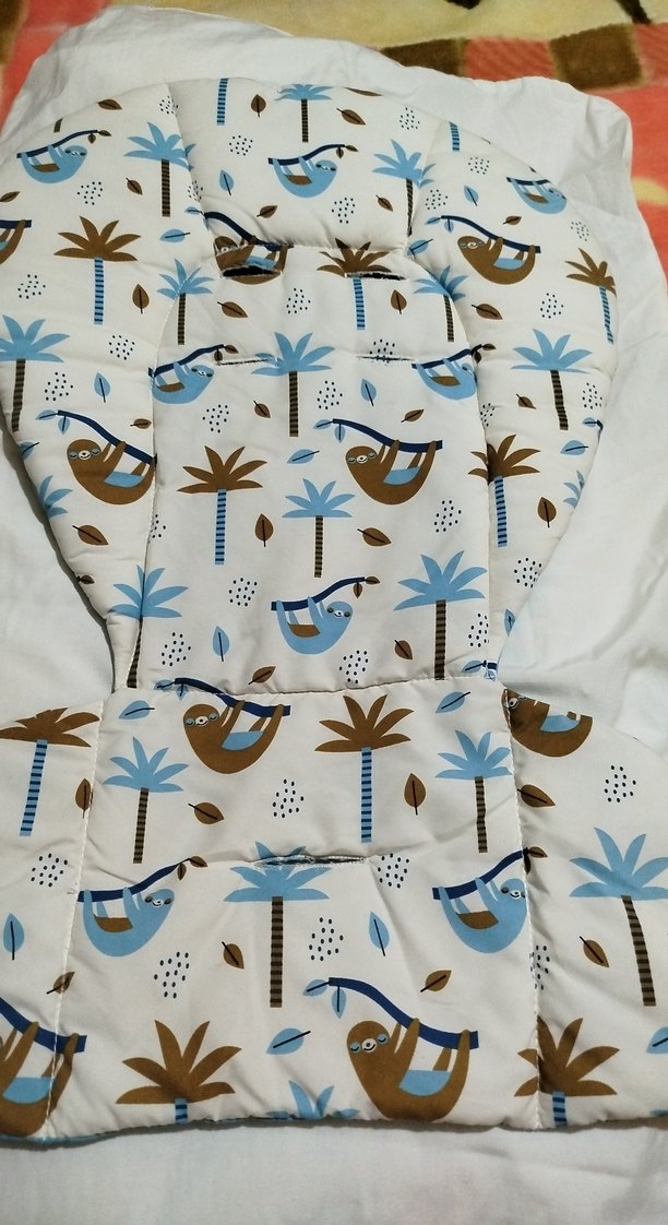 Çocuklar için baskılı uyku minderidir, açık kahverengi ve mavi renklerde temalı tembel hayvan ve palmiye ağaçları deseni vardır.