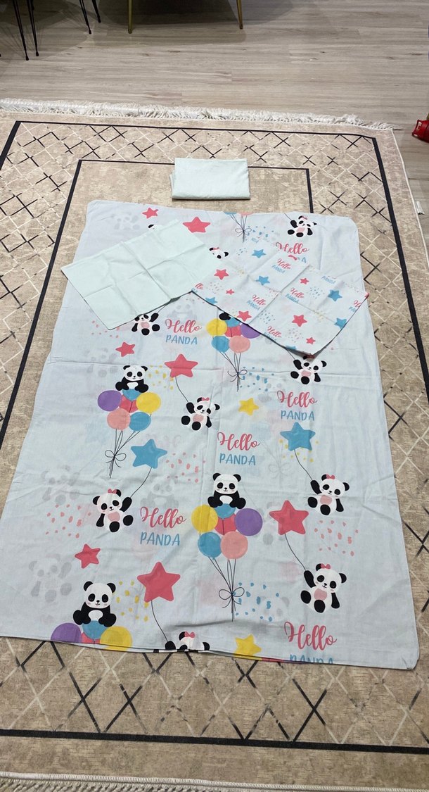 Kullanılmadı 2 yastık 1 çarşaf 1 nevresim seti Baskılı pandalar ve renkli balonlar içeren çok renkli çocuk uyku seti, yumuşak sentetik kumaştan %100 pamuk #çocuk nevresimseti #nevresim