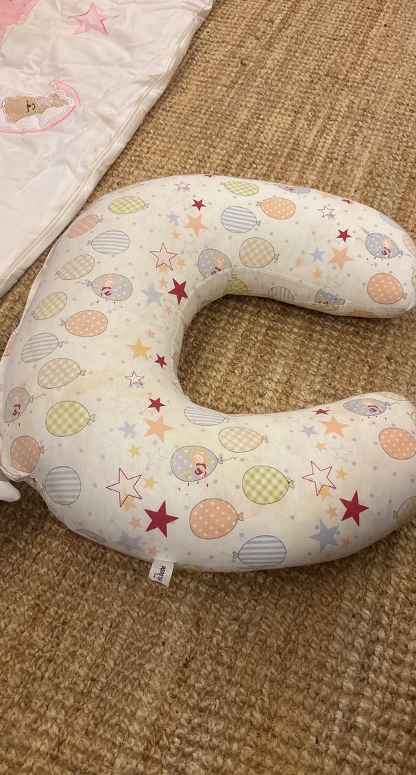 Pastel renklerde, balon ve yıldız desenli baskılı emzirme ve hamilelik yastığıdır. Anneler için rahat destek sağlar.