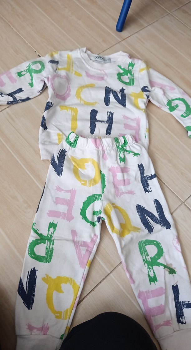 Uzun kollu, yuvarlak yaka, bol kesim kız eşofman takımı. Pastel çok renkli baskılı, yumuşak sentetik kumaştan, sokak tarzı için uygun.