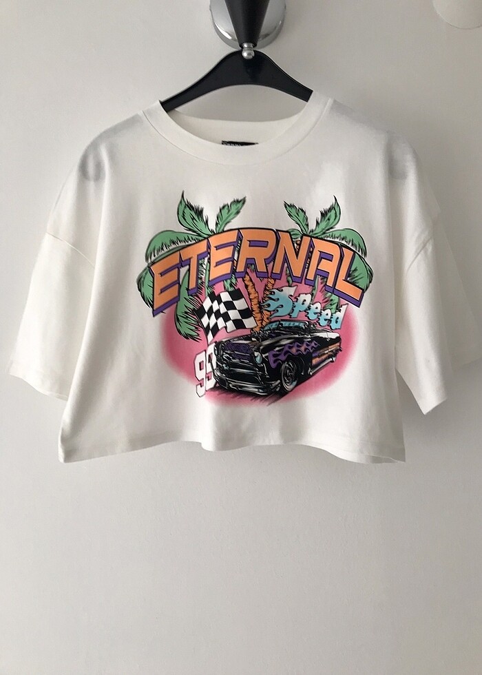 Yenidir. Bel hizasında crop modeldir çok kısa değildir düşük kollu salaş bir kalıptır kumaşı çok kaliteli çok spor şahane bir baskısı var önünde ve renkleri çok tatlı S bedendir ancak oversize kalıp olduğundan M bedenlere de rahatlıkla olur. Baskısındaki pembe renkte alt eşofman var sayfamda birde pembe fırfırlı kısa etek var onlardan biriylede şahane kombin yapabilirsiniz.