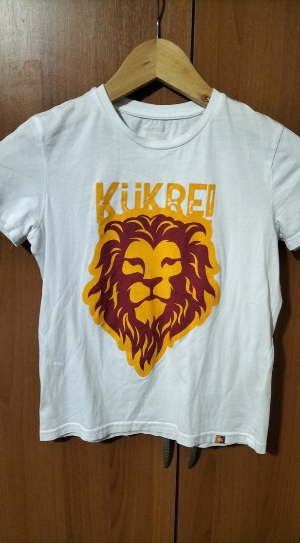 Bol kesim, kısa kollu, bisiklet yaka erkek çocuk tişörtü. Aslan baskısı ve 'KUKREI' yazısı bulunur. Yumuşak ve sıcak kumaştan üretilmiştir.