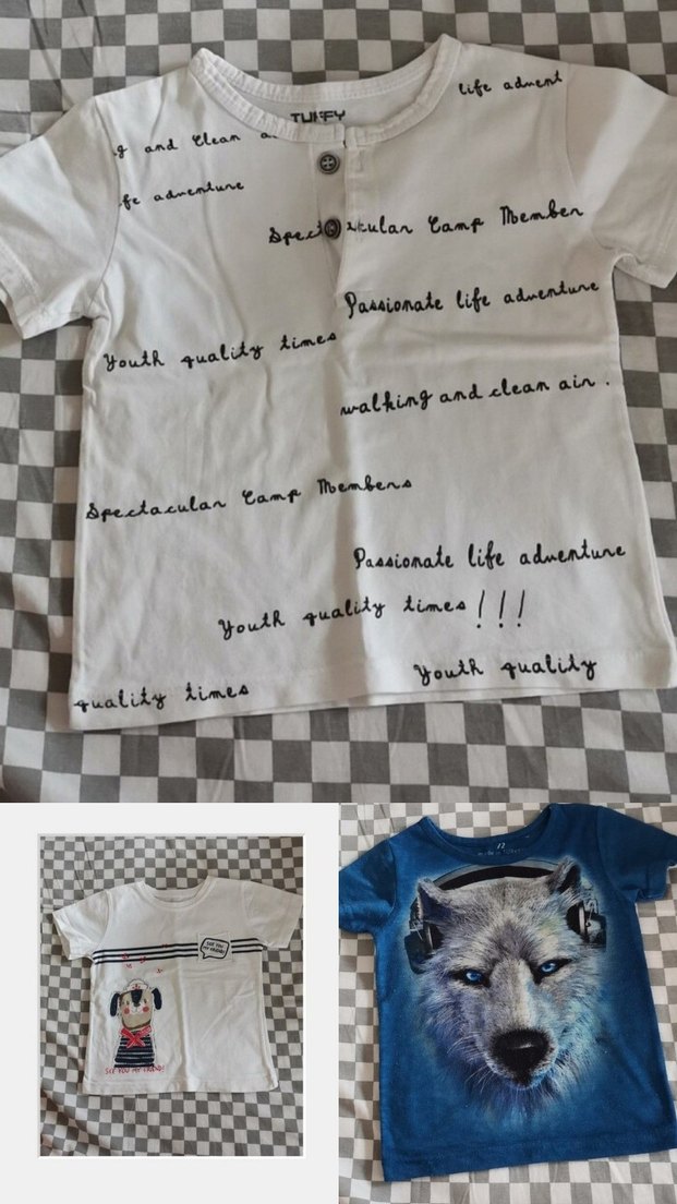Gri denimden üretilmiş, kısa kollu ve yuvarlak yakalı, baskılı erkek çocuk tişörtü. Rahat kesimiyle sokak modasına uygun. 3 adet 2-3 yaş.mavi 3 yaş.