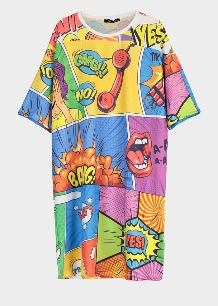 Milla ürün elbise çok renkli eğlenceli bir desen