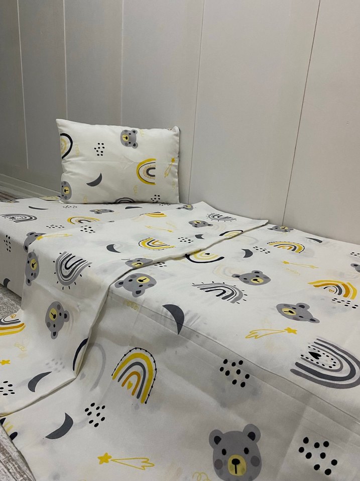 Yumuşak sentetik kumaştan yapılmış, beyaz zemin üzerine gri ayıcık ve renkli gökkuşağı desenli bebek nevresim seti. 3 renk mevcuttur istek doğrultusunda mesaj atabilirsiniz