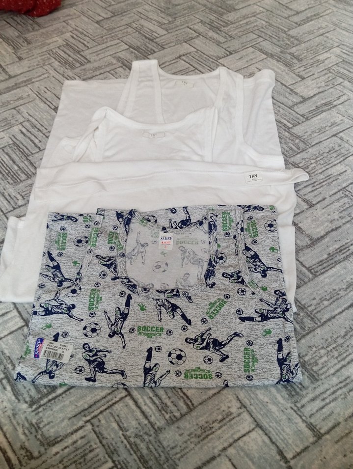 Beyaz askılı atletler ve futbol temalı baskılı gri atletten oluşan atlet seti. Rahat ve günlük kullanım için uygundur. ⚽bedenleri fotoğrafta yüklüdür