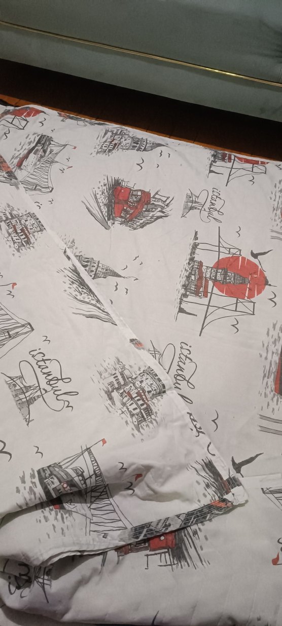 Gri ve beyaz tonlarında, İstanbul temalı baskılı nevresim ve çarşaf takımı. Yatak odasına sanatsal bir dokunuş katar. ️