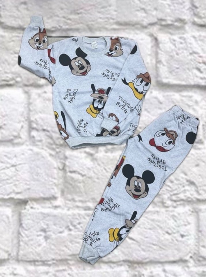 Baskılı Gri Çocuk Pijama Takımı