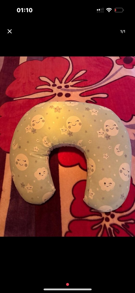 Pastel gri, gülen ay, yıldız ve bulut desenli baskılı hamile ve emzirme minderi. Rahat destek sağlar.