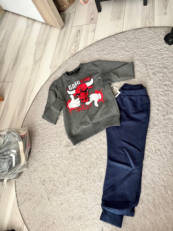 Baskılı Gri Sweatshirt ve Lacivert Eşofman takımı 6-7 yaş