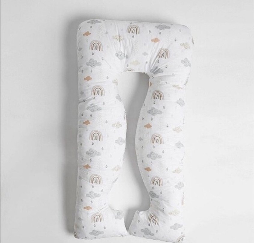 Pastel baskılı beyaz kumaştan yapılmış hamile ve emzirme yastığı, konfor ve destek sağlar. Çok az kullanıldı tertemiz yeniden farksızdır