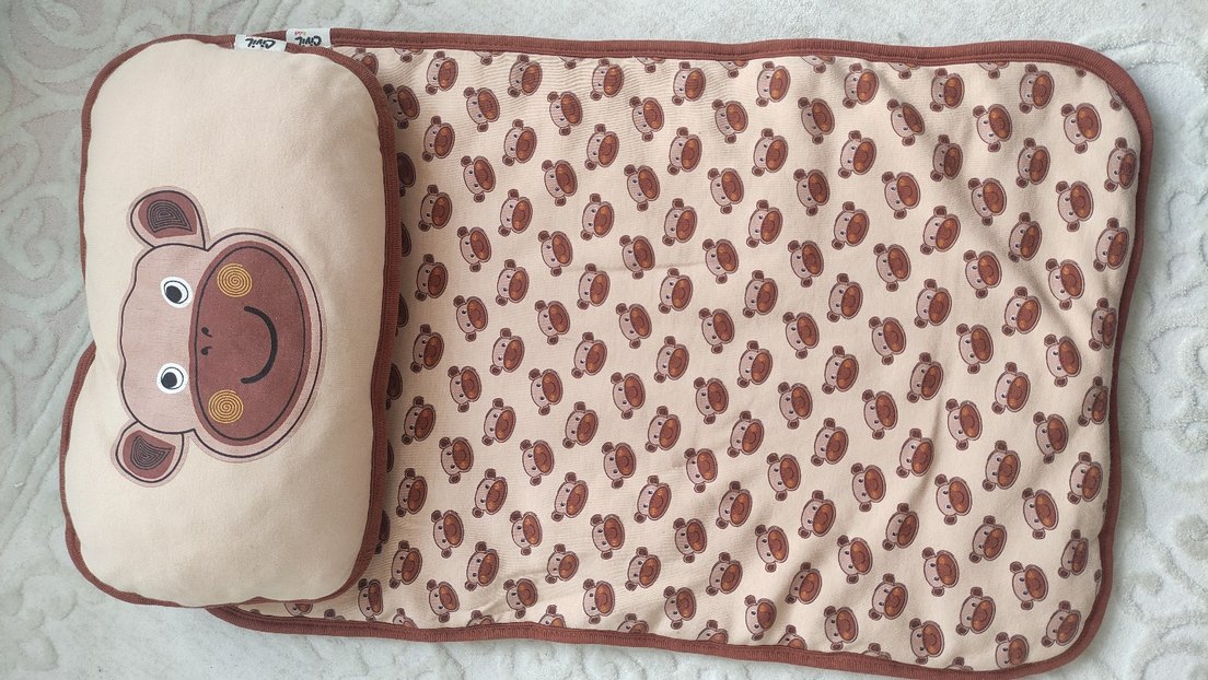 Pastel kahverengi renkli, baskılı ayı desenli, yumuşak sentetik kumaştan bebek alt açma