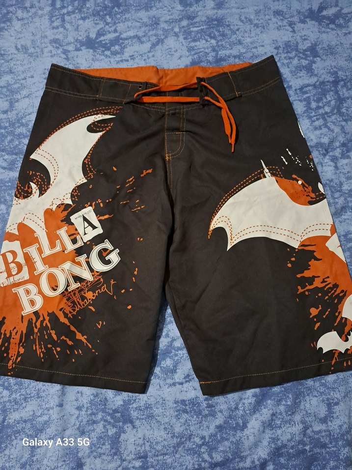 Baskılı, kahverengi, rahat kesim erkek mayo şortu, kemerli ve midi boyda, plaj için şık ve rahat bir seçim.